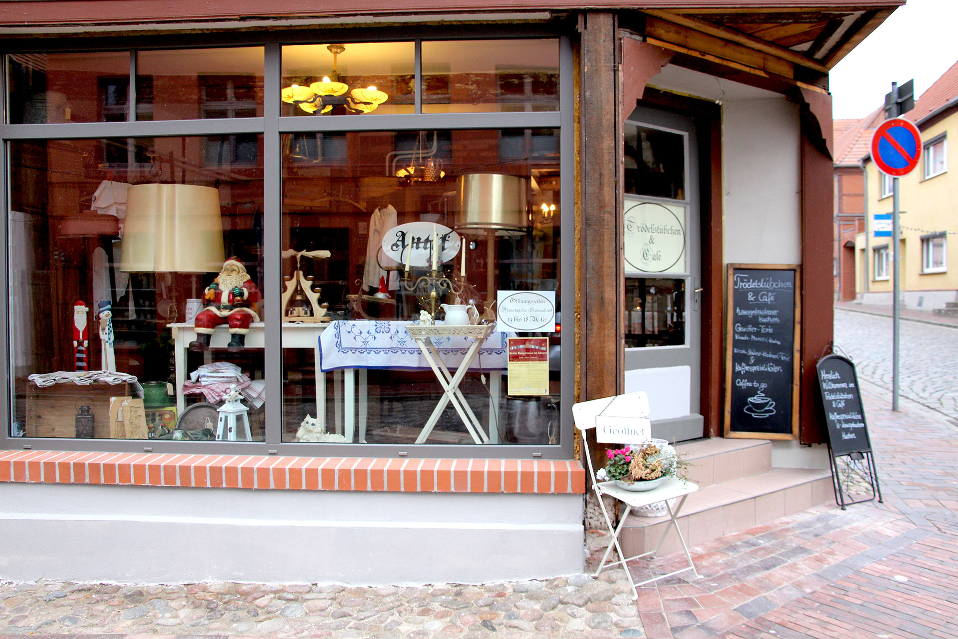 Die Lage des Cafés im mittelalterlichen Plau ist nicht nur wegen der anwachsenden kulturfördernden Läden optimal, sondern ermöglicht unmittelbaren Zugang zur Hauptverkehrsstraße. Familie Klöppner ist sich sicher, dass sie die Burgstraße mit ihrem verlockenden und einmaligen Trödelstübchen bereichern kann. Text: Loyda Zogaib