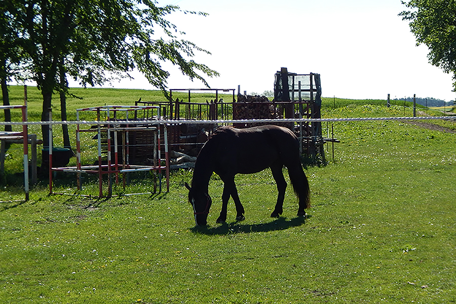 Die 30 Hektar große Hof- & Koppelfläche, die aus einer verwahrlosten LPG Schweinemastanlage umgebaut wurde, bietet viel Fläche zur Erholung und Entspannung. Genau das Richtige für Reitsport-Begeisterte, deshalb kommen dort Gäste aus aller Welt zusammen.Auf dem Hof sind circa 20 Ponys und Pferde beherbergt, ein Ziegenbock Luki, sowie Schweine, Kaninchen und Katzen.